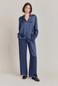 Our trendy, cargo-style Aurora Trousers feature pockets and are slightly flared to create a wider leg. Crafted from our sustainable Eco Vero Satin – soft and stylish in soft blue, complete the look and pair with our Mia Bomber and your favourite sneakers.