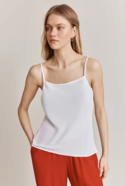 The Holly Cami features delicate spaghetti straps and a square neckline, giving it a timeless look that’s both feminine and elegant. The top is made from a high-quality, lightweight crepe that’s comfortable and breathable, making it perfect for warm weather. With its flattering cut and simple yet stylish design, the Holly Cami is a must-have addition to any wardrobe.